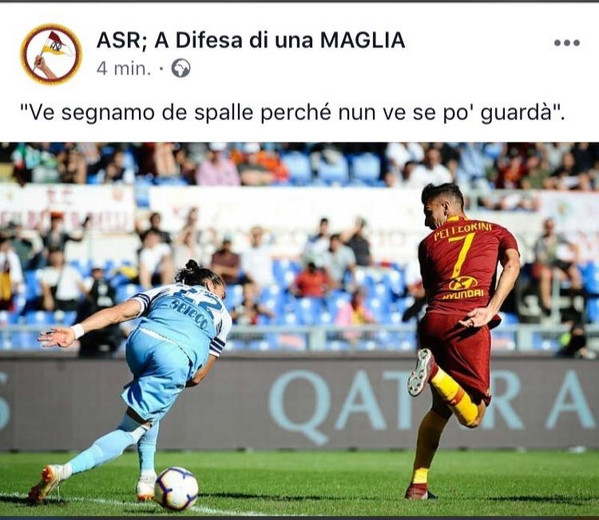 Ovviamente spazio anche al tacco di Pellegrini e al sigillo finale di Federico Fazio e i riferimenti al punteggio finale, che coinvolgono i personaggi più disparati, da Berlusconi a Papa Francesco. Uno dei fotomontaggi più condivisi in queste ore prende di mira in modo sottile anche la Curva Nord, che ieri, per i motivi ben noti, non ha eseguito la coreografia. Viene ripresa una dei derby passati, con la scritta 'Lazio' a campeggiare su tutto il settore della tifoseria biancoceleste. Trasformata in 'Fazio', per ricordare chi ha messo la parola 'fine' sul derby