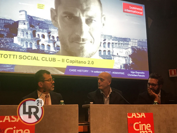 DALLA CASA DEL CINEMA EMANUELE ZOTTI - Francesco Totti sempre più fenomeno social: oltre 3 milioni di follower tra Facebook, Instagram e Twitter. A partire dalle 15 della giornata odierna, infatti, alla Casa del Cinema di Villa Borghese dove fino a domani è in programma la Social Media Week. Durante la 'Totti Social Club: il Capitano 2.0' interverrà lo staff dell'ex capitano della Roma. All'evento intervengono Ugo Esposito e Christian Fasulo, membri dello staff di Totti. Presente anche Silvia Blasi, sorella di Ilary, moglie del capitano giallorosso.