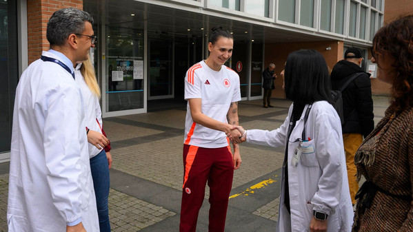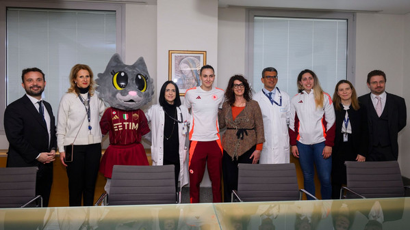 Nella giornata del 7 marzo, le calciatrici della prima squadra Oihane Valdezate e Olivie Lukasova, accompagnate dalla mascotte femminile Romina, si sono recate nella sede del Policlinico Campus Bio-Medico di Trigoria per portare il saluto dell’AS Roma ai medici e alle tante pazienti che hanno aderito all’iniziativa. Altrettanto hanno fatto le giocatrici della primavera Rosanna Ventriglia e Sara Zappettini, che si sono recate al Poliambulatorio di Porta Pinciana.