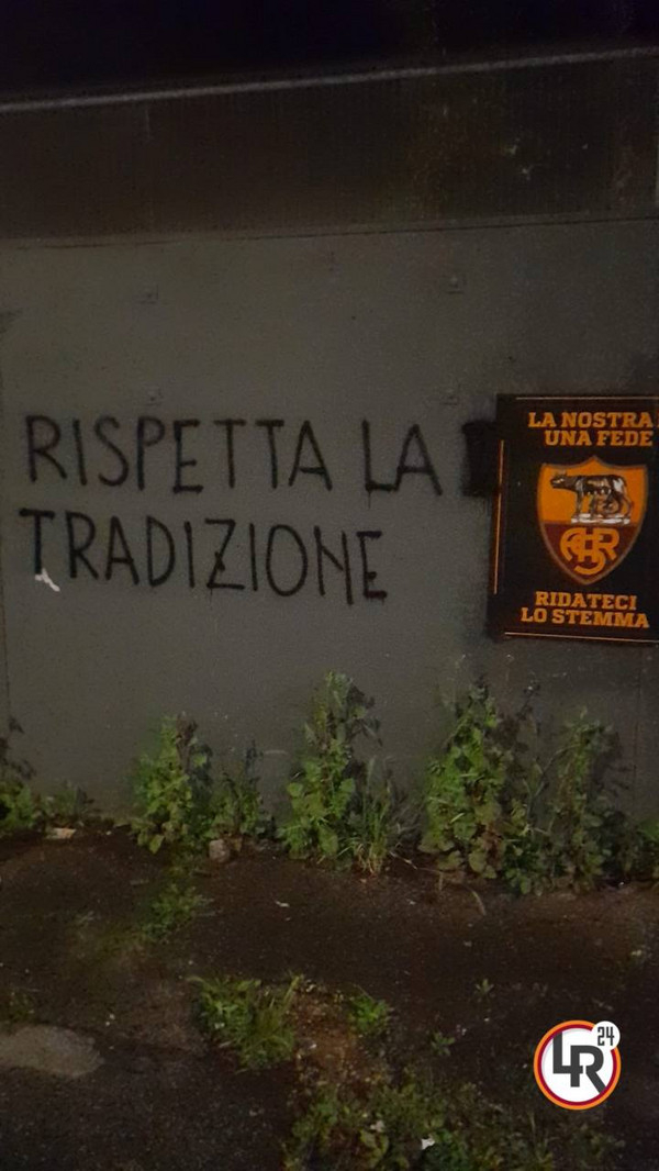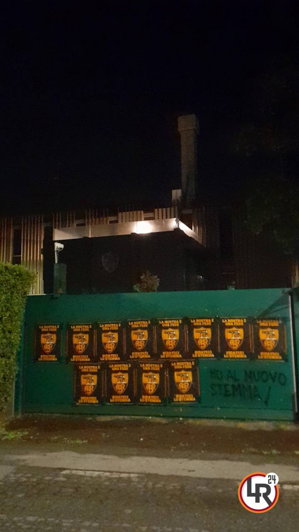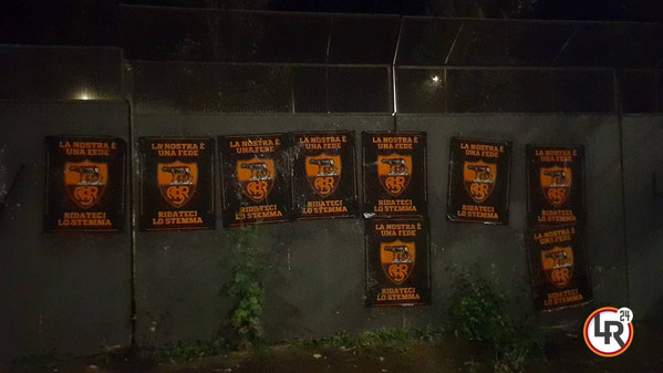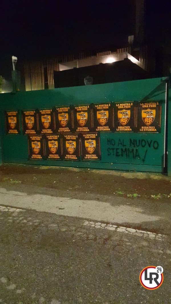 Non si ferma la protesta dei tifosi della Roma riguardo allo stemma. Già in estate erano stati affissi per tutta la città manifesti con lo slogan "La nostra è una fede, ridateci lo stemma". A distanza di circa 8 mesi, però, le cose non sono cambiate e i tifosi giallorossi hanno nuovamente deciso di rilanciare la loro protesta. Oltre ai canonici manifesti attaccati in estate, sono apparse anche alcune scritte sui muri: "No al nuovo stemma! Tifa la tradizione... Si al vecchio stemma" oppure: "Rispetta la tradizione".