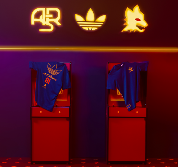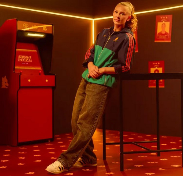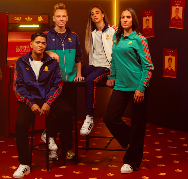 I calciatori e le calciatrici della Roma hanno posato per primi con i capi della nuova collezione in un set che ricrea un’atmosfera tipica degli anni 90: una sala giochi, allestita con i mitici cabinati arcade, le luci soffuse al neon e tutti quegli elementi che hanno caratterizzato la cultura videoludica dell'epoca.