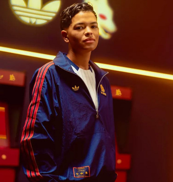 La collezione Terrace Icons si compone di sette articoli: una track-top e una maglia bianche con le iconiche strisce adidas giallorosse, un pantalone e una t-shirt blu ai quali si aggiungono un parka verde e blu con una polo manica lunga total green, simili a quelle indossate dai calciatori giallorossi dei primi anni 90.