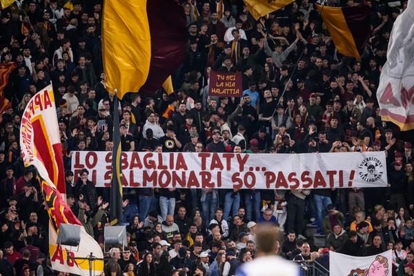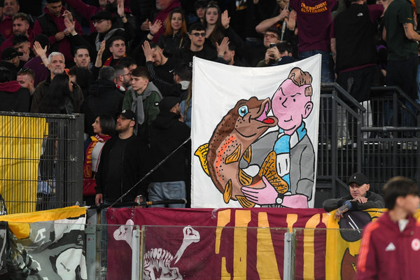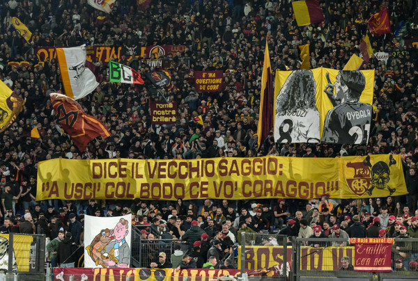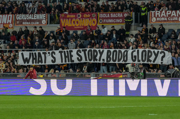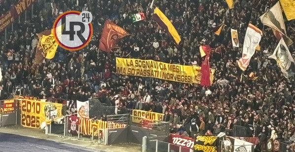 Non si placano gli sfottò da parte dei tifosi romanisti dopo l'eliminazione della Lazio dall'Europa League per mano del Bodo Glimt. Anche prima della sfida contro l'Hellas Verona di questa sera, infatti, fuori l'Olimpico è apparso uno striscione che non lascia spazio ad equivoci: "Meledetti salmonari". Anche all'interno dell'impianto sportivo, i tifosi della Roma si sono sbizzarriti con gli sfottò nei confronti della Lazio. Sugli spalti sono apparse scritte come "Dice il vecchio saggio a uscì col Bodo ce vo coraggio", oppure "Chi di pantone ferisce, di salmone perisce".