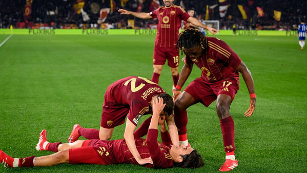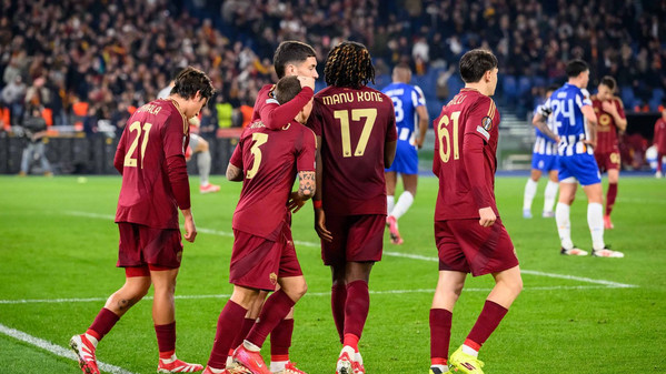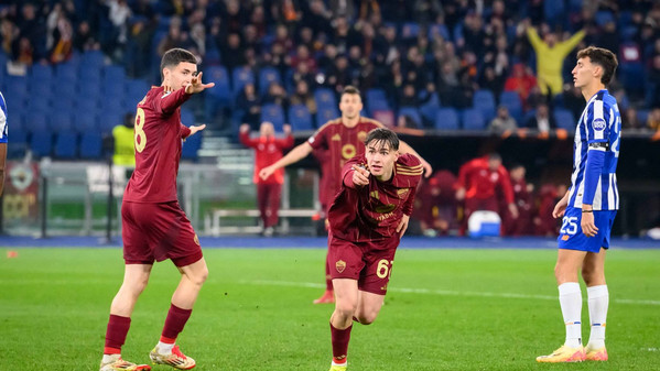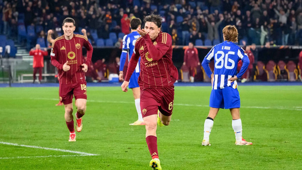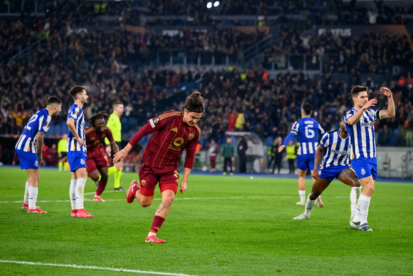 Dopo l’1-1 dell’andata all’Estadio Do Dragao la Roma strapazza 3-2 il Porto allo Stadio Olimpico nel match di ritorno e conquista l’accesso agli ottavi di finale grazie alle reti di Dybala (doppietta) e Pisilli. La prima grande occasione della partita capita sulla testa di Pellegrini su cross di Celik, ma la palla termina sopra la traversa. Successivamente i portoghesi spaventano la retroguardia giallorossa, ma El Shaarawy salva tutto con un grande ripiegamento difensivo. La Roma si riaffaccia in avanti con Shomurodov, il quale prova a rendersi pericoloso con alcuni colpi di testa senza però impegnare particolarmente Diogo Costa. L’equilibrio si spezza al minuto 27: Svilar serve Paredes, il centrocampista scivola e la palla arriva dopo un paio di rimpalli a Omorodion, il quale si inventa un super gol in rovesciata e porta in vantaggio gli ospiti. I giallorossi non si abbattono e reagiscono furiosamente trovando subito la rete del pareggio: triangolo Shomurodov-Dybala, la Joya si presenta davanti a Diogo Costa e lo trafigge con un tocco di esterno. Paulo è scatenato e si ripete dopo quattro minuti: scambio con Koné e conclusione secca di mancino sul primo palo che buca il portiere avversario. La Roma non si ferma e sfiora il clamoroso tris: Diogo Costa si supera sul colpo di testa di Mancini, poi la palla arriva a Ndicka ma la sua doppia conclusione viene salvata incredibilmente sulla linea da Otavio. Termina così il primo tempo sul 2-1 per la Roma. Inizia la ripresa e al 51’ il Porto resta in 10: Paredes provoca Eustaquio, il calciatore dei portoghesi reagisce e colpisce l'argentino con un pugno. Il VAR richiama l'arbitro al monitor e lo espelle. Con la superiorità numerica la Roma inizia a spingere e va più volte vicina al tris con Shomurodov: la prima volta sciupa un’enorme occasione da due passi calciando alto, mentre dopo buca Diogo Costa ma il gol viene annullato per fuorigioco. A sorpresa il Porto si riaffaccia in avanti e va a centimetri dal clamoroso pareggio: Omorodion vince un rimpallo con Ndicka e si invola verso la porta di Svilar, l’attaccante spagnolo calcia e colpisce il palo. La Roma torna a premere ed è sempre Dybala l’uomo più pericolo, ma le sue conclusioni vengono respinte in extremis dalla difesa. All’83’ i giallorossi chiudono la partita: Angelino crossa per Pisilli, il quale viene lasciato completamente solo dal Porto e segna il tris che chiude la partita in spaccata. Inutile l'autogol di Rensch al 96', il quale nel tentativo di anticipare l'attaccante infila il pallone nella sua porta. Grazie a questo successo la Roma spezza la maledizione Dragoes (3 eliminazioni su 3 prima di oggi) e strappa il pass per gli ottavi di finale, dove affronterà una tra Athletic Bilbao e Lazio. Domani alle ore 13 gli uomini di Ranieri scopriranno il proprio avversario.