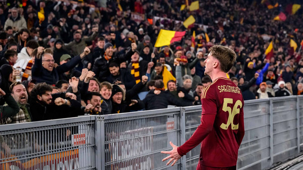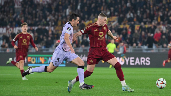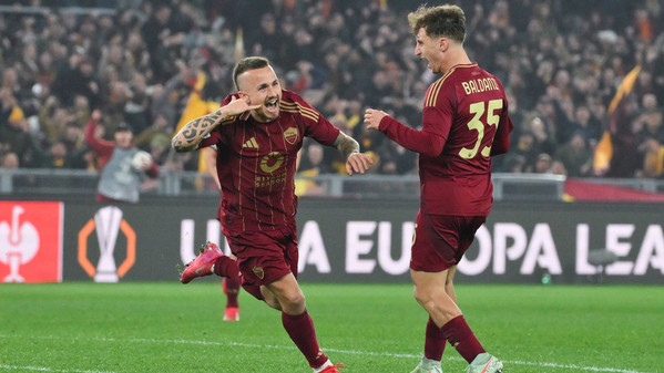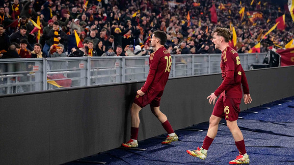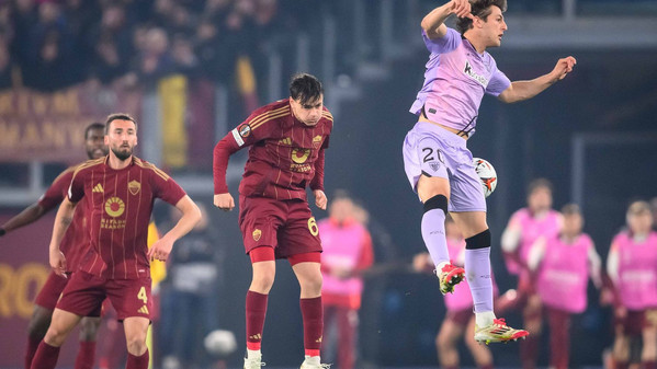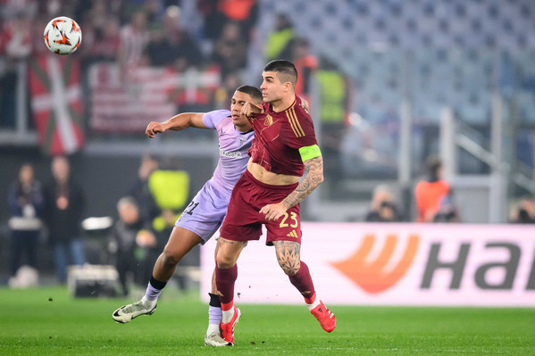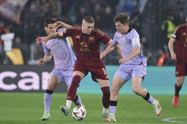 La Roma vince all'ultimo respiro per 2-1 allo Stadio Olimpico contro l'Athletic Club grazie alle reti di Angelino e Shomurodov e conquista un piccolo vantaggio in vista del match di ritorno al San Mames. Dopo una lunga fase di studio la Roma ha una grande occasione al minuto 21 con Dovbyk, il quale si invola verso la porta avversaria su lancio di Pisilli ma scivola clamorosamente al momento del tiro. Le squadre continuano a studiarsi ma al 41’ i giallorossi creano l’occasione migliore della prima frazione di gioco: Baldanzi fa un grande lavoro in area e appoggia per Dybala, il quale calcia di sinistro a botta sicura e colpisce la traversa. La chance creata dall’argentino sembra accendere la partita e anche l’Athletic spaventa Svilar con un pericoloso colpo di testa di Yeray, ma la palla termina sul fondo. I baschi prendono coraggio e creano un’altra occasione con una zuccata di Sannadi, ma anche in questo caso la conclusione non inquadra la porta. Termina così sullo 0-0 la prima frazione di gioco. L’inizio della ripresa è scioccante per i giallorossi: calcio d’angolo per gli ospiti, spizzata di Paredes e colpo di testa di Inaki Williams che buca da posizione ravvicinata Svilar e porta in vantaggio gli spagnoli. La Roma ha l’opportunità di pareggiare immediatamente, ma Baldanzi spreca un’enorme occasione calciando troppo alto e forte dall’interno dell’area di rigore. Successivamente è Pisilli ad andare a un passo dall’1-1 con un tiro potentissimo di destro, ma il pallone sfiora la traversa. Gli uomini di Ranieri assediano la porta avversaria e trovano il pareggio al 56’: cross basso di Celik, Angelino calcia di destro in modo sporco e beffa il portiere con una traiettoria particolare che pizzica il palo e si insacca in rete. Dopo la rete del terzino sinistro dei capitolini, l’Athletic torna ad affacciarsi dalle parti di Svilar e si rende pericoloso con un colpo di testa del neo entrato Guruzeta. All’81’ Berenguer cestina una grande chance, ma calcia altissimo dall’altezza del dischetto del rigore. Quattro minuti più tardi gli ospiti restano in 10 a causa dell'espulsione di Yeray e i giallorossi danno vita a un assedio finale che si conclude con la rete di Shomurodov: imbucata di Saelemaekers, il centravanti uzbeko si gira e fa esplodere l'Olimpico al 93'. Ora la Roma dovrà difendere questo vantaggio tra una settimana al San Mames.