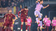20.30 - Squadra in campo per il riscaldamento in un ambiente caldissimo con le bandiere dei tifosi al vento: