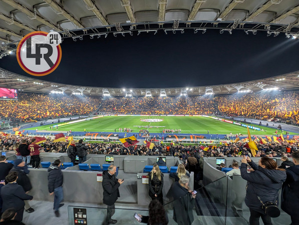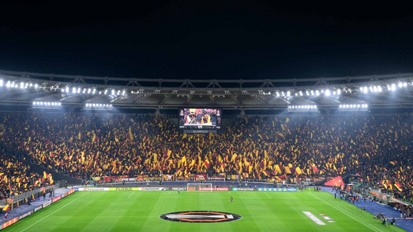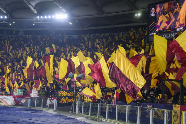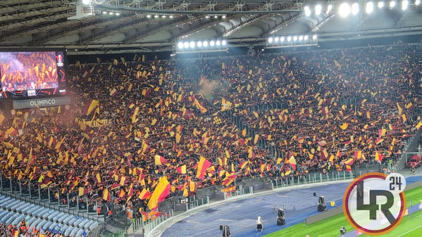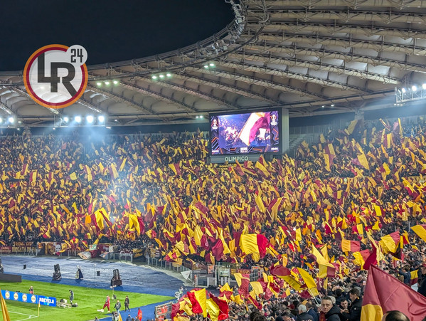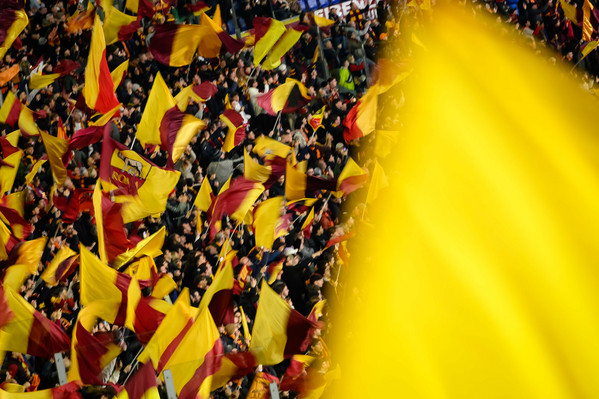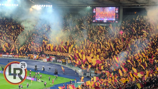 Lo Stadio Olimpico si tinge di giallorosso restituendo un'atmosfera da brividi. La Roma riceve in casa l'Athletic Club nella sfida valida per l'andata degli ottavi di finale di Europa League e, come da indicazione della Curva Sud, i romanisti riempiono lo stadio con bandiere giallorosse sventolate dal momento del riscaldamento della squadra e accompagnando anche l'iconico inno. In Curva Sud viene poi esposto lo striscione: "Finché vedrai...", che richiama il coro "Finché vedrai, sventolar questa bandiera...".