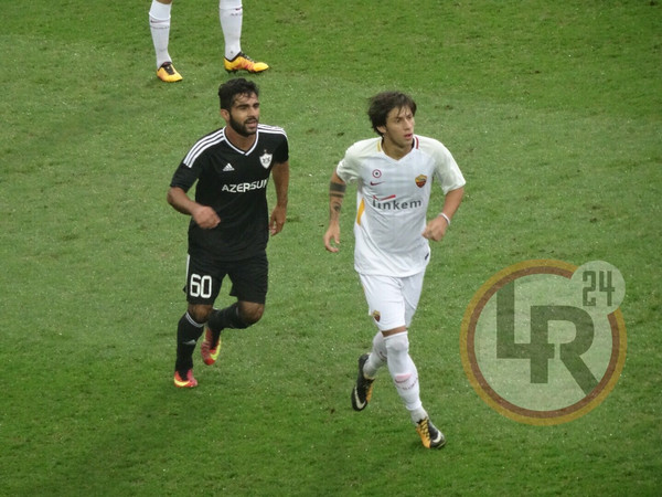 62' - Roma vicina al terzo gol: ripartenza ben condotta dalla Roma che da Valeau porta al tiro Antonucci: il tiro di sinistro dell'attaccante viene bloccato da un grande intervento del portiere del Qarabag che devia in angolo.
