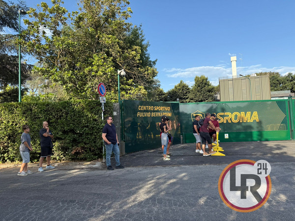 08:13 - Aumenta il numero dei tifosi presenti fuori dai cancelli di Trigoria. Al momento si contano una trentina di persone, pronte a far sentire il proprio calore alla squadra nel primo giorno di ritiro.