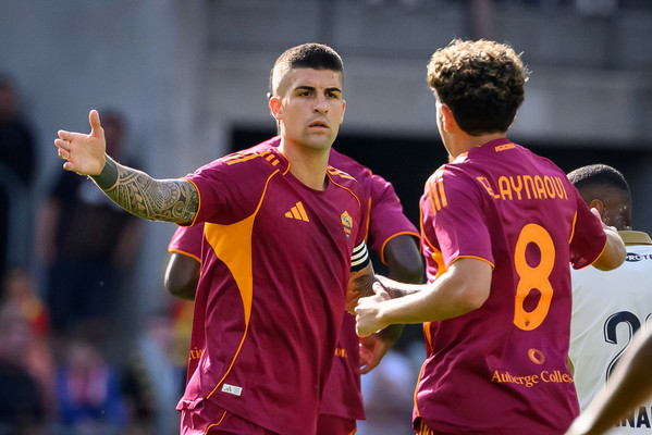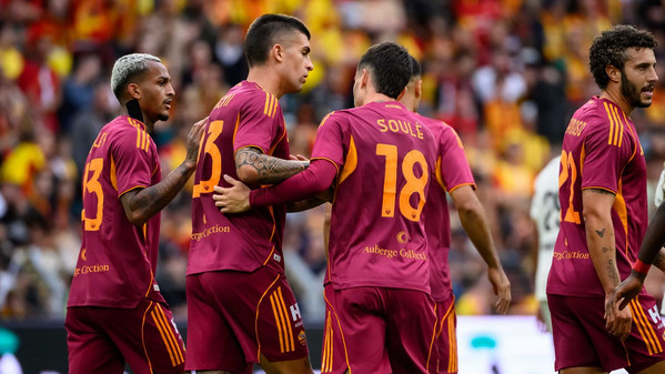 DALLO STADE BOLLAERT-DELELIS MDR - La Roma fa cinque su cinque e vince 0-2 contro il Lens nella prima vera amichevole di livello. Il Lens parte fortissimo e va vicino al vantaggio dopo appena due minuti: Satriano scavalca Svilar con un tocco sotto troppo debole, Wesley si tuffa in scivolata e salva a pochi metri dalla linea di porta. La difesa giallorossa continua a ballare e Guilavogui si presenta da solo davanti a Mile, ma il portiere si oppone ed evita il gol. La Roma si sveglia e al 14’ passa sigla lo 0-1: punizione di Soulé, Celik prolunga di testa e Mancini non sbaglia con il destro da posizione ravvicinata. Gli uomini di Gasperini prendono il controllo del campo e sfiorano il raddoppio con Baldanzi su un passaggio illuminante di Soulé, ma la potente conclusione mancina del trequartista termina di poco al lato. La gioia per il vantaggio viene però spazzata via dalle condizioni di Ndicka, il quale si accascia a terra a causa di una distrazione muscolare e viene sostituito da Hermoso. Terminato il primo tempo sul risultato di 0-1, nella ripresa la Roma parte concentrata e al 55’ si porta sullo 0-2: Koné recupera il pallone in area e serve Soulé, l’argentino si sposta la sfera sul sinistro e batte Gurtner con una conclusione sul palo lontano. Successivamente l’argentino resta a terra dopo una lieve distorsione alla caviglia e, come accaduto con Ndicka, viene immediatamente sostituito. Nei minuti finali la Roma gestisce il doppio vantaggio e sfiora anche il tris con una pericolosa punizione di Hermoso respinta dal portiere. I giallorossi si aggiudicano così il 'Trophée 1906' (istituito per celebrare il 120esimo anniversario del Lens) e i numeri salgono a 29 reti realizzate e 0 subite in cinque gare. Il prossimo appuntamento della squadra di Gasperini sarà il match in Inghilterra contro l’Aston Villa, in programma il 6 agosto.