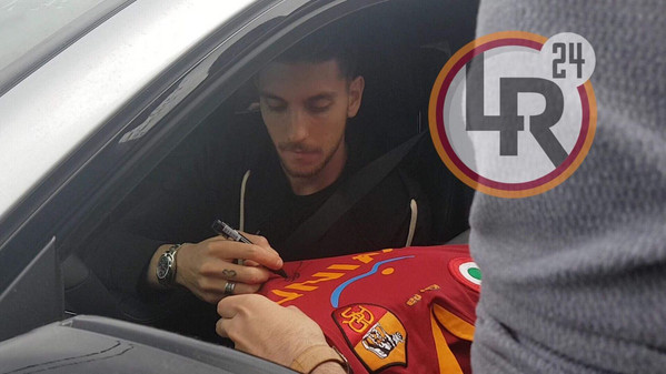 Più tardi è il turno di Kevin Strootman: come per Pellegrini, anche per il centrocampista olandese lunga sessione di foto e autografi all'uscita da Trigoria.