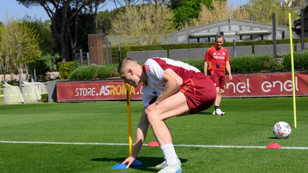 La Roma continua ad allenarsi al centro sportivo 'Fulvio Bernardini' di Trigoria a due giorni dall'attesissimo Derby della Capitale contro la Lazio, valido per la trentaduesima giornata e in programma domenica 13 aprile alle ore 20:45 allo Stadio Olimpico. Nessuna novità per quanto riguarda i recuperi: Devyne Rensch e Lorenzo Pellegrini hanno lavorato nuovamente con il resto del gruppo e sono ormai pienamente recuperati. Gli unici assenti restano quindi Paulo Dybala e Saud Abdulhamid.