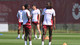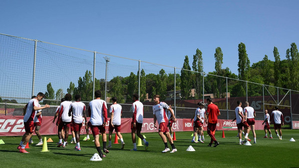 La seduta è iniziata con un focus atletico per poi passare al lavoro con il pallone incentrato su passaggi e tiri in porta. Successivamente è andata in scena la consueta partitella a campo ridotto, ma questa volta senza portieri.