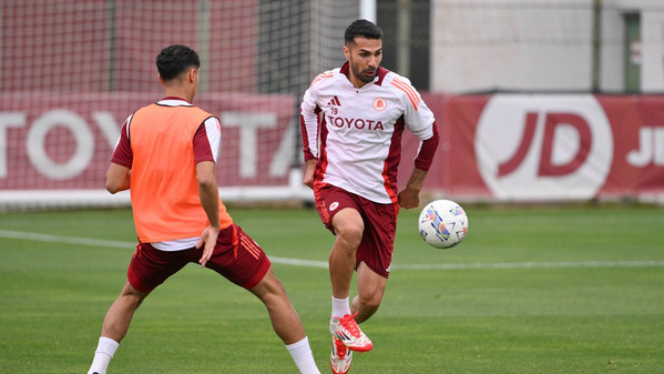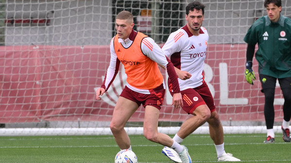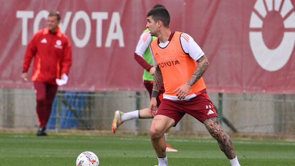 La seduta di oggi è iniziata con alcuni esercizi di riscaldamento ad alta intensità sotto l'incoraggiamento dello staff di mister Ranieri. Poi, i giocatori sono stati divisi in due squadre e si è svolta la consueta partitella. Complimenti per Lorenzo Pellegrini, per una bell'apertura verso Angelino, Zeki Celik, Matias Soulé, uno dei più attivi, e soprattutto per Mile Svilar. Il portiere, in grande forma, sfodera una gran parata proprio sull'argentino e riceve gli applausi da parte dello staff. Infine, durante la sessione di tiri finali, grande ovazione anche per Stephan El Shaarawy, che infila sotto al sette un pallone imprendibile per l'estremo difensore della Roma. Ecco il video dell'allenamento.