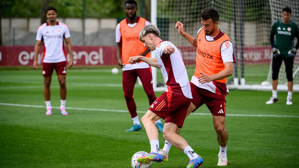 Per quanto riguarda la seduta, l'allenatore ha potuto contare su tutto il gruppo tranne gli infortunati Paulo Dybala e Buba Sangaré. Da segnalare le condizioni di Gianluca Mancini: il difensore non ha accusato alcun problema fisico, ma si è allenato con una vistosa calza sulla gamba sinistra. L'allenamento inizia con delle divertenti sfide a calcio-tennis e Leandro Paredes si è messo in mostra realizzando un punto con una splendida sforbiciata. "Oh, stattene di là", scherza Ranieri con uno dei giocatori durante l'esercizio. Successivamente si passa al lavoro atletico e poco dopo Ranieri dà il via a degli esercizi con il pallone: "Fate le squadre come volete, basta che siate tre e tre". Infine si disputano le consuete partitelle a campo ridotto, ma in una di esse il terreno di gioco viene diviso in due dalle porte posizionate al centro. "Non c'è fuorigioco", specifica Ranieri durante una sfida.
