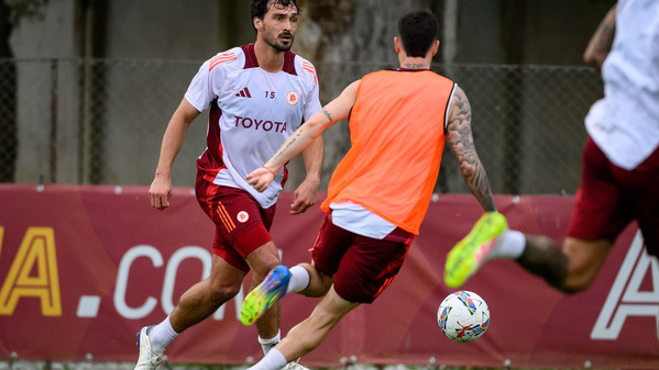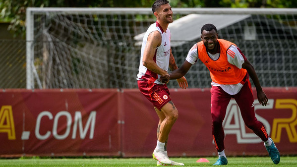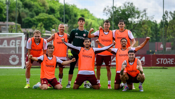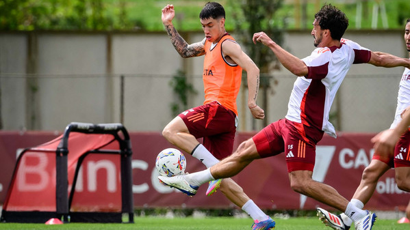 Dopo la vittoria con la Fiorentina e qualche giorno di riposo, questa mattina la Roma è tornata al Fulvio Bernardini di Trigoria per iniziare la preparazione in vista della sfida contro l'Atalanta, 36esima giornata di campionato in programma lunedì 12 maggio a Bergamo. Sorrisi, esultanze e qualche polemica nella partitella al termine della seduta odierna vinta dalla squadra composta da Nelsson, Baldanzi, Angeliño, De Marzi, Paredes, El Shaarawy, Pisilli, Rensch e Soulé.