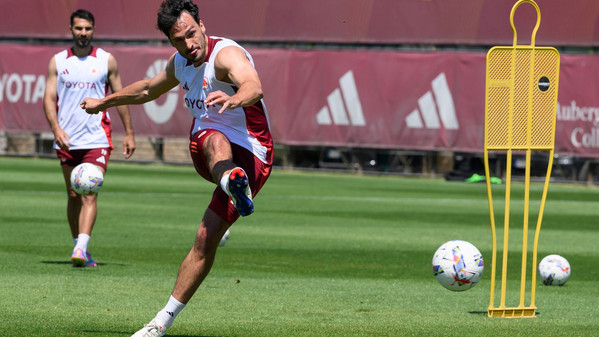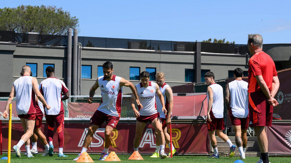 La Roma continua ad allenarsi al centro sportivo 'Fulvio Bernardini' di Trigoria in vista della delicatissima sfida contro il Milan, valida per la trentasettesima giornata e in programma domenica alle ore 20:45 allo Stadio Olimpico. Mister Ranieri ha potuto contare su tutto il gruppo tranne Paulo Dybala e Lorenzo Pellegrini: il capitano si è operato in mattinata in Finlandia in seguito alla lesione del tendine del retto femorale della coscia destra rimediata nel corso di un allenamento.
