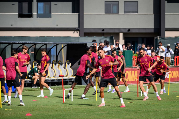 15:25 - Inizia la seduta di rifinitura: la squadra è appena scesa in campo: assenti Paulo Dybala e Leon Bailey. Presente Gianluca Mancini, il quale ha un cerotto sul volto dopo il colpo ricevuto contro l'Hellas Verona.